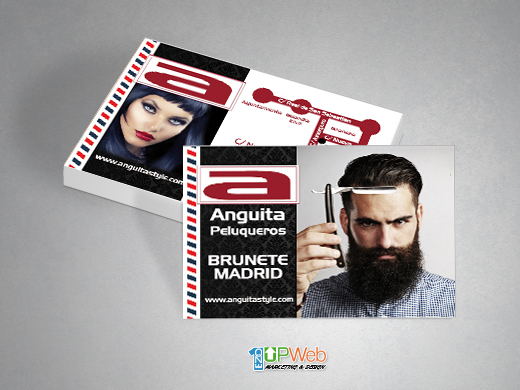 Las nuevas tarjetas de visita de las peluquerias Anguita, ubicadas, una en Brunete y otra en Madrid.